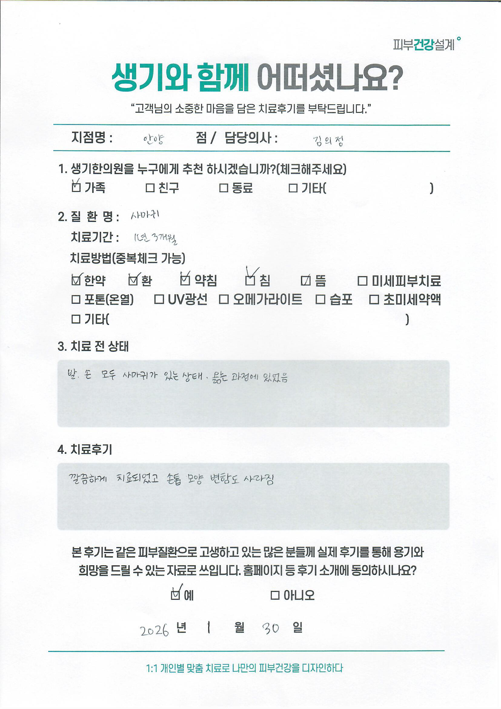 생기한의원과 함께하신 생생한 자필 및 영상 후기를 소개합니다.