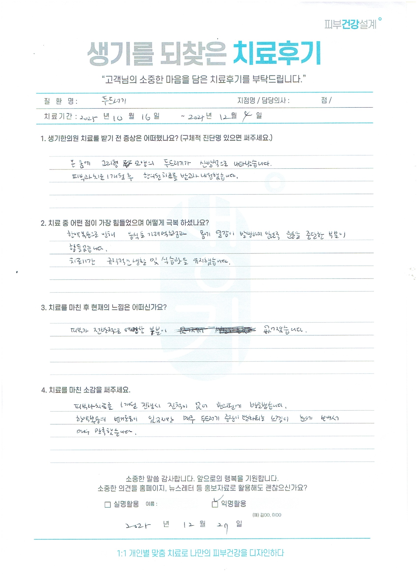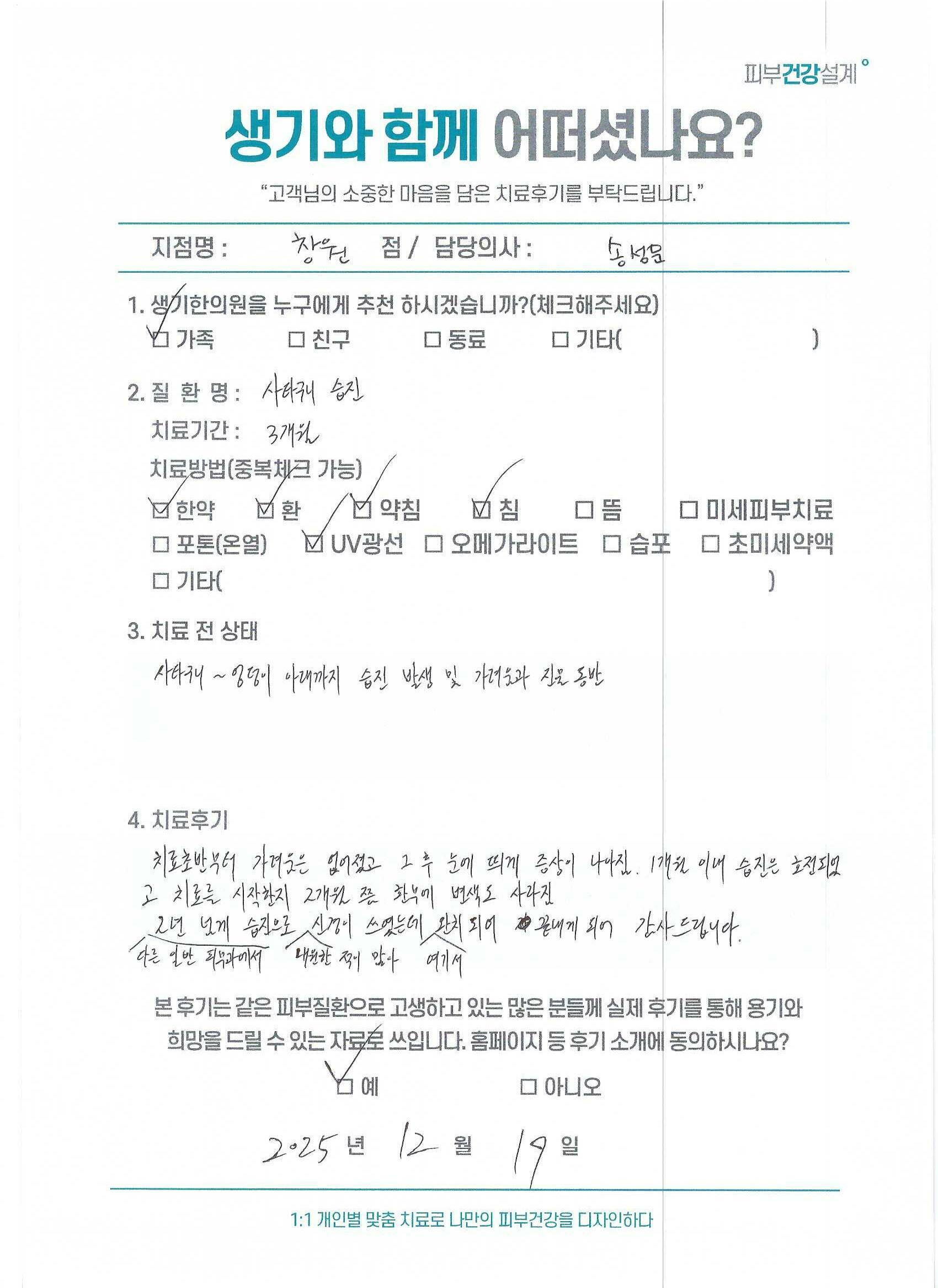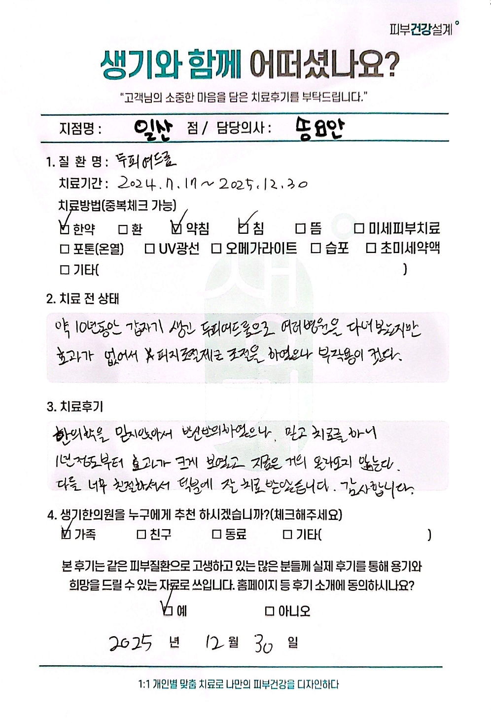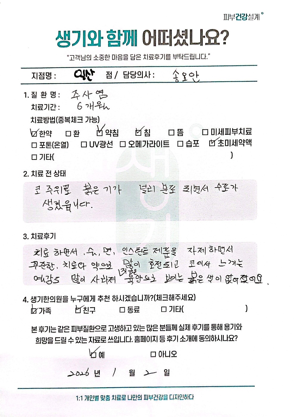 생기한의원과 함께하신 생생한 자필 및 영상 후기를 소개합니다.